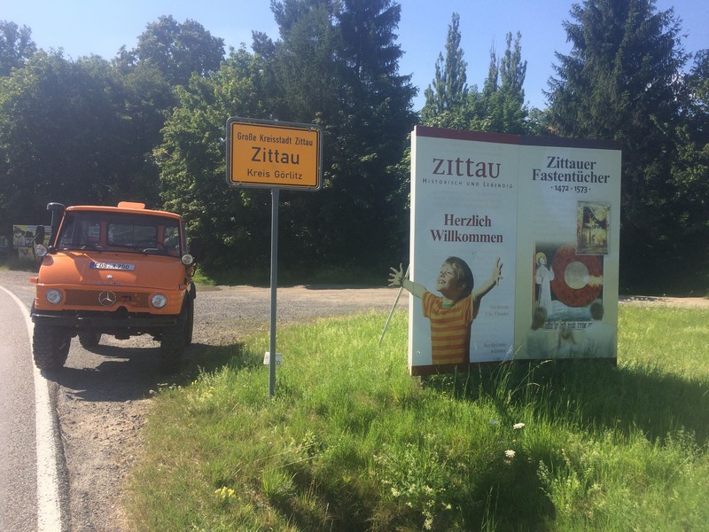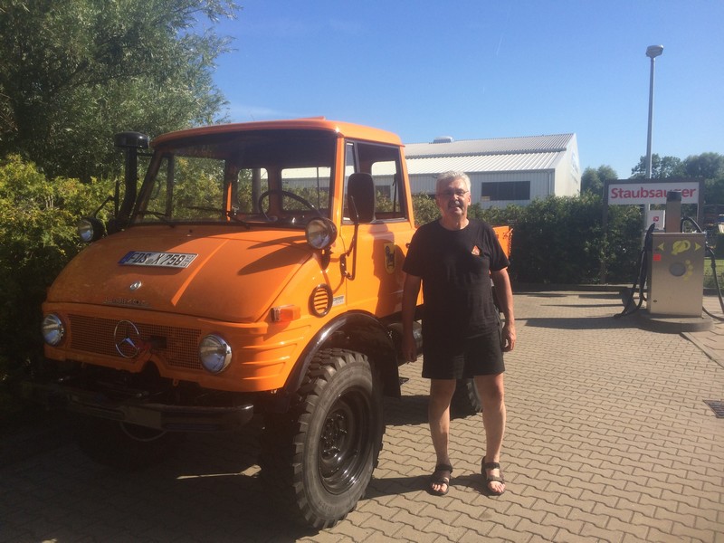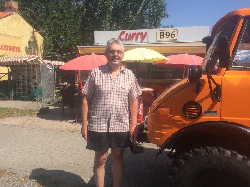 Frank Jahraus ist schon viel herumgekommen. Mit seinen Unimog-Fahrzeugen war er schon in Polen (bis zur ukrainischen Grenze), in der Schweiz, Frankreich, Tschechien, Südtirol, Venedig und in vielen Bundesländern von Deutschland. In seiner jüngsten Reise durchquerte der den Osten der Republik. Ein unvergessliches Erlebnis für Frank Jahraus. Ein Reisebricht im Fernsehen auf MDR machte mich eines Tages neugierig. Da fuhren zwei pensionierte Herrschaften mit ihrem schön restaurierten Oldtimer aus alter DDR-Zeit auf der B96 von Zittau nach Sassnitz. Der Film und diese Bundesstraße machten mich neugierig und ich dachte so bei mir, dass ich diese Route auch einmal mit dem Unimog fahren könnte. Als es die Ostzone noch gab, war die B96 eine Fernverkehrsstraße (F96) und eine wichtige Querverbindung in der damaligen DDR. Zwischen Zittau und Sassnitz liegen 520 km und viele Abenteuer-Münder vergleichen die B96 mit der amerikanischen Rote 66 – also die ostdeutsche Route 66. Dieses Ziel vor Augen erkundete ich über das Internet die Fahrtstrecke, die quer durch Berlin führt und stellte fest, dass es doch alles in allem stolze 2600 km werden sollten. Nun galt es einen geschickten Zeitpunkt zu finden und die Anzahl der Tage festzulegen. Im Juli 2019 sollte es sein – 8 Tage müssten ausreichen. Und so starte ich am Montag, 22.Juli früh morgens um halb acht in Richtung Zittau. Ich fuhr über die schwäbische Alb bis nach Ulm und entlang der Donau bis Donauwörth. Von dort aus weiter über Weißenburg, Neumarkt in der Oberpfalz, Amberg bis nach Horlach / Pegnitz. Hier traf ich um 19.45 Uhr nach 450 km im ersten Übernachtungsziel ein. Zu meinem abendlichen Ritual auf meinen Unimogreisen gehört der tägliche Fahrzeugcheck. Reifendrücke prüfen und Flüssigkeitsstände kontrollieren. Sind die Keilriemen fest und verliert der Motor irgendwo Öl? Beim Kontrollieren der Räder stellte ich fest, dass am vorderen linken Reifen ein Nagel im Profil steckte. Mmh ?? Rausziehen? Auf keinen Fall. Druckverlust? Bis jetzt noch nicht. Also … der Nagel bleibt stecken und ich mache mir dann Gedanken, wenn es zum Luftverlust kommen sollte. Am zweiten Tag brach ich um 08:45 Uhr auf und mein nächstes Ziel sollte Jiedlitz in der Oberlausitz sein. So fuhr ich über Grafenwöhr, Weiden in der Oberpfalz nach Cheb / Eger (Tschechien), weiter nach Plauen in Sachsen, durch den schönen Vogtlandkreis nach Aue, Annaberg-Buchholz und durch das Erzgebirge nach Freiberg, Freital bis nach Dresden. Ich durchquerte die Stadt Dresden auf der B6 und fuhr über Bischofswerda bis nach Jiedlitz. Von Jiedlitz aus waren es nur 60 km bis nach Zittau, dem eigentlichen Start meiner Tour, die dann „offiziell“ am Mittwoch auf der B96 beginnen sollte. Im Gasthaus in Jiedlitz bin ich schon Stammgast. Die vielen Reisen in unseren Partnerlandkreis nach Polen haben mich schon oft in diesem gemütlichen traditionellen Gasthaus einkehren lassen. So war ich froh um ein bequemes und bekanntes Quartier für die zweite Nacht und ein leckeres und reichhaltiges Abendessen. Der nächste Morgen – Tag 3: Heute geht’s auf die B96 – jippihhhh … wie die Kapitäne der Landstraße aus alten Zeiten. Um 10:25 Uhr starte ich in der Innenstadt von Zittau auf die B96. Ein heißer Sommertag erwartete mich und so ging es los über Oppach, Bautzen, Hoyerswerda, Senftenberg, Finsterwalde, Luckau, Baruth, Zossen nach Mittenwalde. Jetzt hatte ich noch ca. 30 km bis Berlin. Oh – oh … die Bundeshauptstadt mit mehr als 3,6 Mio. Einwohnern. Den Berufsverkehr hatte ich hinter mir gelassen und so fuhr ich um 18:15 Uhr über Schönefeld auf der B96a über den Bezirk Neukölln in den Bezirk Treptow-Köpenick ein. Mein Ziel war die Feuerwache Treptow der Berliner Feuerwehr. Geschafft – um 19:15 Uhr öffneten mir die Kollegen der Berliner Feuerwehr das Hoftor zur Feuerwache und so konnte ich meinen 421er im Innenhof der Feuerwache abstellen. Ein netter Kollege begrüßte mich und zeigte mir das Gästezimmer, in dem ich nun für eine Nacht einziehen durfte. Die Feuerwache in Treptow ist eine „Zugwache“ und eine sogenannte Klingelwache, d.h. fast die ganze Nacht waren die Kollegen zu Einsätzen unterwegs. Bei der Berliner Feuerwehr sind mehr als 4300 Mitarbeiter beschäftigt, die im Jahr 2017 zu mehr als 458.000 Einsätzen ausrückten. Berlin … das sind gigantische Dimensionen. Und ich nun mittendrin … mit meinem Unimog. Wahnsinn. Am nächsten Morgen fuhr ich um 09:00 Uhr nach dem Frühstück los. Stralsund war mein heutiges Ziel und es ging quer durch Brandenburg. Aber zunächst mal aus Berlin rauskommen. Kreuzberg, Charlottenburg, Bezirk Mitte, Tegel, Birkenwerder und dann endlich geschafft – Oranienburg. Es ging weiter über Sachsenhausen, Löwenberger Land, Ravensbrück, Neustrelitz, Penzlin, Neubrandenburg, Greisfwald bis nach Stalsund. Aber so schnell ging es nun doch nicht. Aus dem Filmbeitrag vom MDR erinnerte ich mich an eine Currywurst-Bude. Und ich habe sie gefunden. „Curry-B96“ in Teschendorf. Direkt an der B96. Ich hielt natürlich an und kam gleich mit der Frau ins Gespräch, welche bestimmt 50 rote und 50 weiße Würste auf dem Grill liegen hatte. Aber es war kein Mensch an der Bude, außer mir. Ich bestellte mir eine Currywurst und aß sie genüsslich unter einem Sonnenschirm. Immer wieder donnerten schwere Sattelzüge vorbei in Richtung Westen und in Richtung Osten. Und da es nun „High Noon“ war, füllte sich der kleine Parkplatz schnell mit vielen Handwerkerautos und Lastwagen und jetzt war mir klar, dass die 50 „Roten“ und die 50 „Weißen“ schnell gegessen waren. Ich machte mich vom Acker und kam gerade mit „Ach und Krach“ aus dem überfüllten Parkplatz heraus, um weiter durch die vielen kleinen Brandenburger Dörfer zu fahren, durch die sich die Bundesstraße schlängelte. Auf diesem Streckenabschnitt stellte ich für mich fest, dass hier die Uhr stehen geblieben ist und es mit Sicherheit noch einmal 30 Jahre