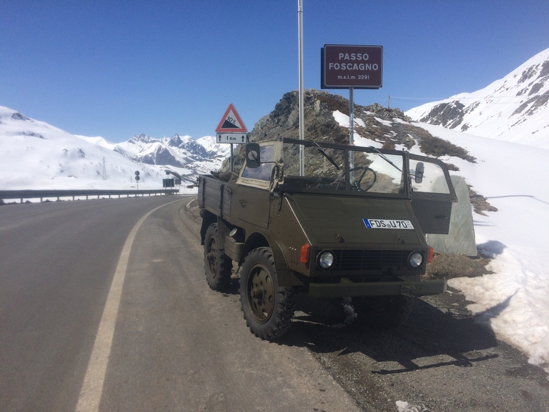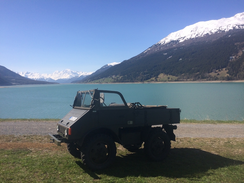 Reisebericht mit einem „Dieseli“ – U 401 Baujahr 1951 Liebe Leserinnen und Leser. Liebe Unimogfreunde. Im April 2019 habe ich aus dem Hause „Sackmann – Heselbach“ einen Unimog U 401 – Schweizer Dieseli gekauft. Gleich am 30.04.2019 machte ich mich mit dem edlen Teil, dem ich den Namen „Swisser“ gab, auf den Weg nach Österreich. Ausgangspunkt war Freudenstadt. Die Reise verlief über Hechingen, Balingen, Albstadt, Sigmaringen, Bad Waldsee, Leutkirch, vorbei an Kempten, Reutte / Tirol über den Fernpass nach Imst und entlang der Autobahn bis Landeck. Dort traf ich abends um 19:00 Uhr an der Jet-Tankstelle ein. Ab jetzt ging es ins Inntal in Richtung Reschenpass bis nach Ried im Oberen Inntal. Dort hatte ich mich auf dem Bauernhof der Familie Maaß „Sagenschneider-Hof“ einquartiert. Die Familie hatte für den Swisser sogar einen Stellplatz in der Scheune eingerichtet. Das fand ich ausgesprochen freundlich. Um 20:30 Uhr konnte ich ein schnuckeliges Zimmer beziehen und mir sogar noch ein Feierabendbierchen auf dem Balkon gönnen. Das Wetter war unterwegs nicht so prickelnd. Während der ganzen Zeit gab es Temperaturen im einstelligen Bereich und es regnete zeitweise. Ab Imst bis Ried begleitete mich dann die Abendsonne und für die nächsten beiden Tage waren Sonnenschein pur und warme Temperaturen vorhergesagt. Der nächste Morgen – 01.Mai. Frau Maaß hatte für mich ein reichhaltiges Natur- und Biofrühstück vorbereitet. Einfach nur lecker. Um 09:00 Uhr startete ich in Richtung Reschenpass. Beschwerlich war der Anstieg von Pfunds bis Nauders und ich musste mit meinem 25 PS – Unimog mehrmals rechts ranfahren und den nachfolgenden Fahrzeugen Platz verschaffen. Aber es gab keine wüste Huperei und keine Fingerzeichen folgten aus den Fensterscheiben der Autos. Stahlblauer Himmel und Sonnenschein ließen mich am Reschensee das Dach des Unimogs öffnen. Ab jetzt fuhr ich also „Cabrio“. In Südtirol fuhr ich über Burgeis weiter über die Schweizer Grenze nach Santa Maria in Richtung Ofenpass (2149 Meter über NN). Mit 30 km pro Stunde schnaufte das „Dieseli“ die Passstraße hoch bis zur Restauration des Ofenpasses. Nach einer kurzen Verschnaufpause ging es weiter durch den 3 Kilometer langen einröhrigen Munt-la-Schera-Tunnel nach Livigno ins zollfreie Gebiet des Touristenstädtchens. Zollfrei tanken für 95 Cent / Liter – eine Wohltat für das Portmonee. Jetzt fuhr ich hoch über den Passo Eira (2208 Meter über NN) zum Passo Foscagno (2291 Meter über NN). Dort an der Zollstation angekommen machte ich in der herrlichen Frühlingssonne eine längere Pause. Überall lag noch meterhoch der Schnee. Im Winter hatte es hier sehr viel geschneit und die Berge ringsum hatten allesamt noch eine Krone aus Schnee. Der Rückweg sollte eigentlich über den Berninapass nach Zernez gehen. Da aber der Bernina gesperrt war, fuhr ich denselben Weg, entlang des Lago de Livigno durch den Tunnel, über den Ofenpass zurück nach Ried im Inntal zu meiner Unterkunft. Dort traf ich um 21:30 Uhr nach einer langen und sehr schönen Fahrt ein. Der riesige Lago de Livigno (Fläche – 4,71 m² und liegt auf 1802 Meter über NN) hatte übrigens fast kein Wasser mehr im Einstaubecken. Über den Winter wurde das Wasser für die Stromproduktion verwendet. Kurz entschlossen machte ich einen Abstecher in den leeren und ausgetrockneten Seegrund. Eine Abenteuerfahrt für jeden Unimogfahrer. Am 02. Mai ging meine Toru wieder um 09:00 Uhr los und ich fuhr wieder über die Grenze nach Italien und durch das schöne Vinschgau bis nach Meran, Dorf Tirol, Schenna und Bozen. In Bozen machte ich Pause und am späten Nachmittag brach ich zur Rückfahrt auf – über den Gampenpass (1518 Meter über NN) und wieder durch die Apfelblüte im Vinschgau. Um 21:00 Uhr war ich an meinem Ausgangspunkt, dem „Sagenschneider-Hof“, angekommen. Müde und mit einem heftigen Sonnenbrand im Gesicht war der Tag zu Ende gegangen. Am 03.Mai fuhr ich um 09:30 Uhr los in Richtung Heimat. Nach einigen Pausen traf ich um 22:30 Uhr wieder in Freudenstadt ein. Alles in allem war es eine super Tour. Insgesamt hatte ich 1230 km in vier Tagen zurückgelegt. Ich schaffte einen Schnitt von 38 km/Stunde und mein Dieseli verbrauchte genau 9,8 Liter/100 km. Motorenöl musste ich nicht einmal nachfüllen. Das spricht für einen „gesunden“ Motor, der ünrigens schnurrte und schnurrte und tadel- und problemlos lief. Die Originalledersitze aus dem Jahr 1951 bereiteten mir keine Sitz- und Rückenbeschwerden. Empfehlenswert zum Cabrio fahren ist eine gute Sonnencreme mit einem hohen Schutzfaktor mitzunehmen!! Bedanken möchte ich mich ausdrücklich beim Team Sackmann aus Heselbach für die tolle technische Vorbereitung für diese Reise. Meine nächste Unimogreise ist im Juli geplant. Da möchte ich mit einem Sackmann-Unimog (U 421 Baujahr 1983) auf der legendären B 96 von Zittau (Sachsen) bis nach Sassnitz (Rügen / Mecklenburg-Vorpommern) fahren. Das werden insgesamt 2.800 km sein und ich freue mich sehr auf diese Fahrt. Also … freut Euch auf einen neuen Bericht nach der Reise im Juli. Bis dahin – Gute Fahrt!