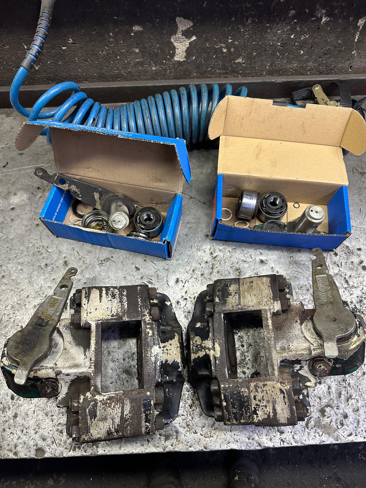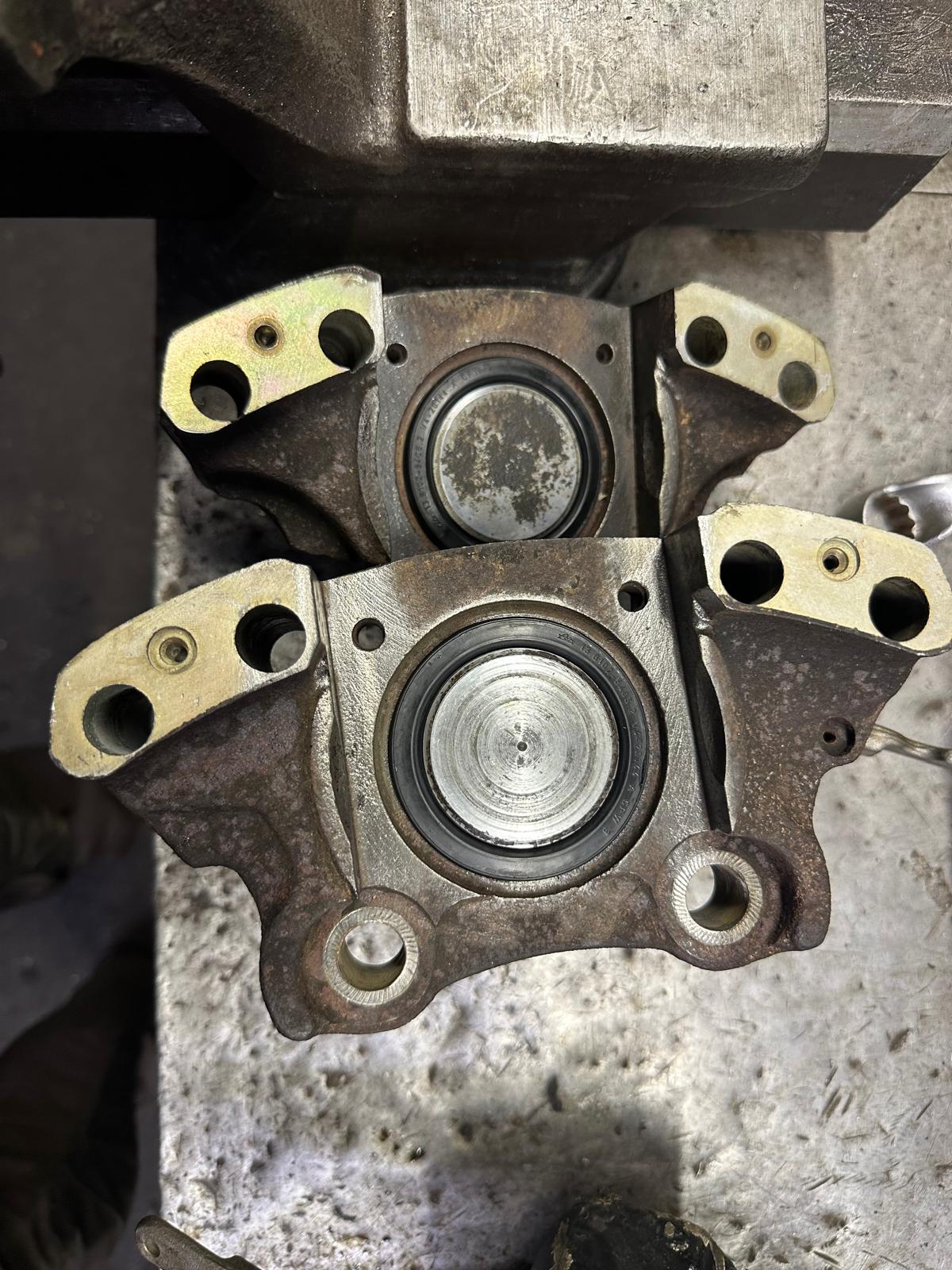 Update 3: Bremssättel zerlegt, gereinigt, entrostet und mit neuem Dichtsatz montiert, neue Scheiben draufgemacht.