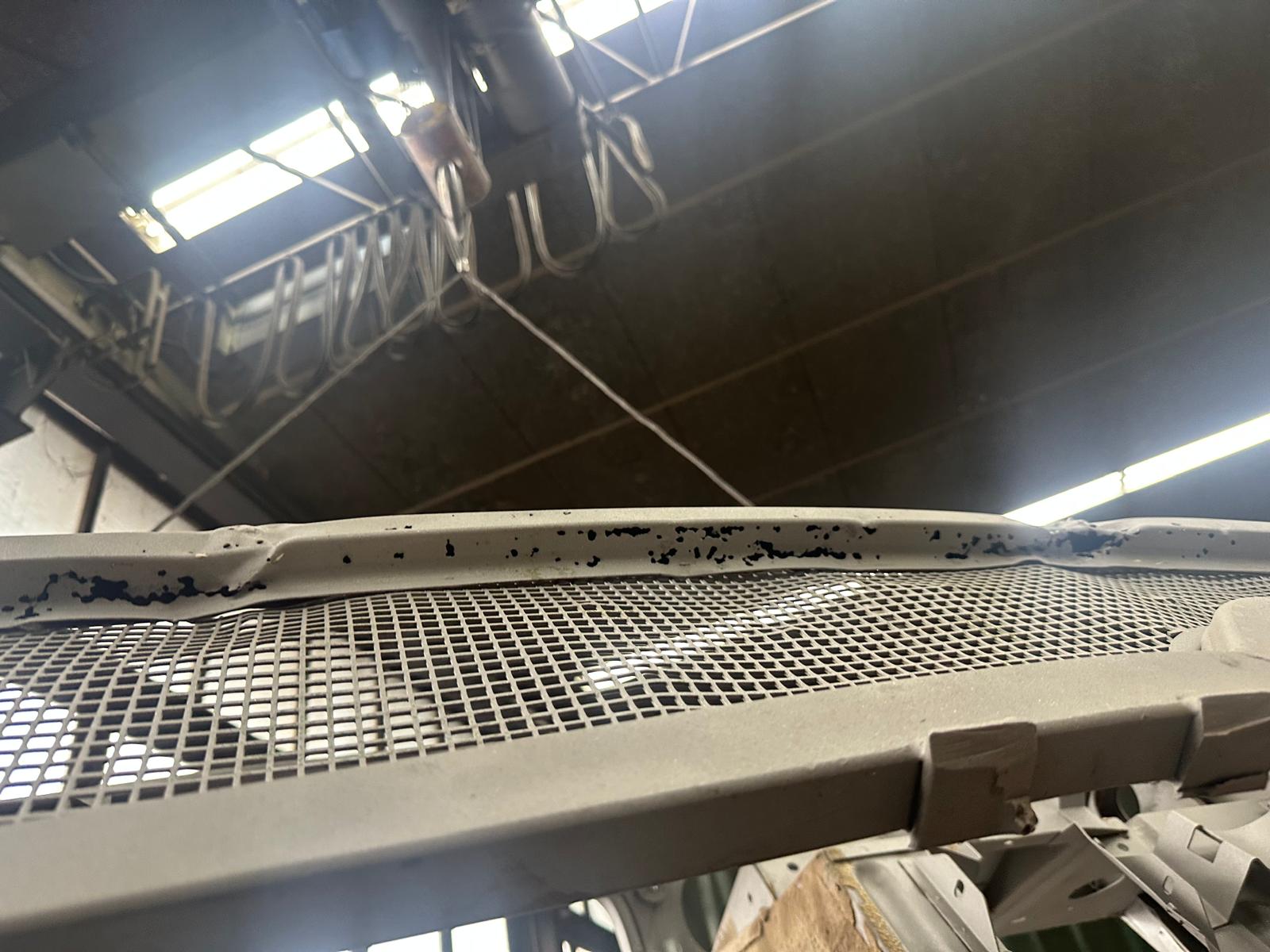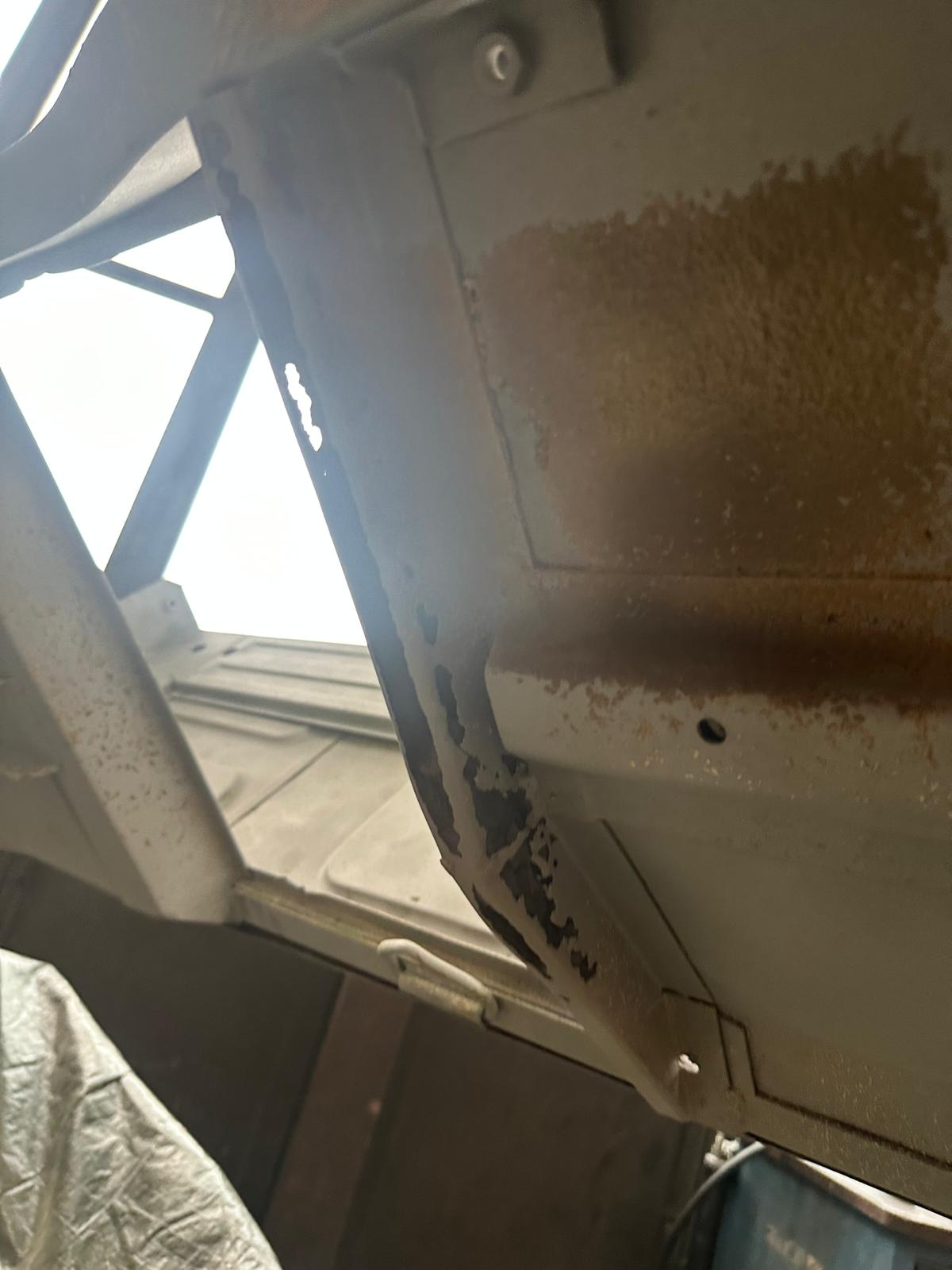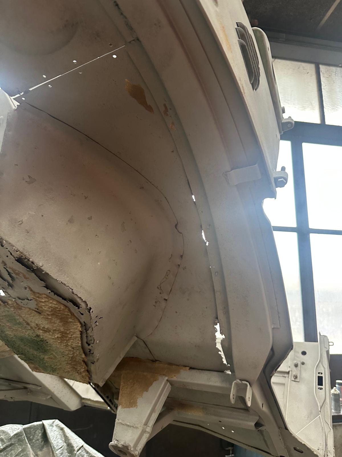 Update 3: Karosserie wurde sandgestrahlt, Thomas schweißt neue Bleche ein.
