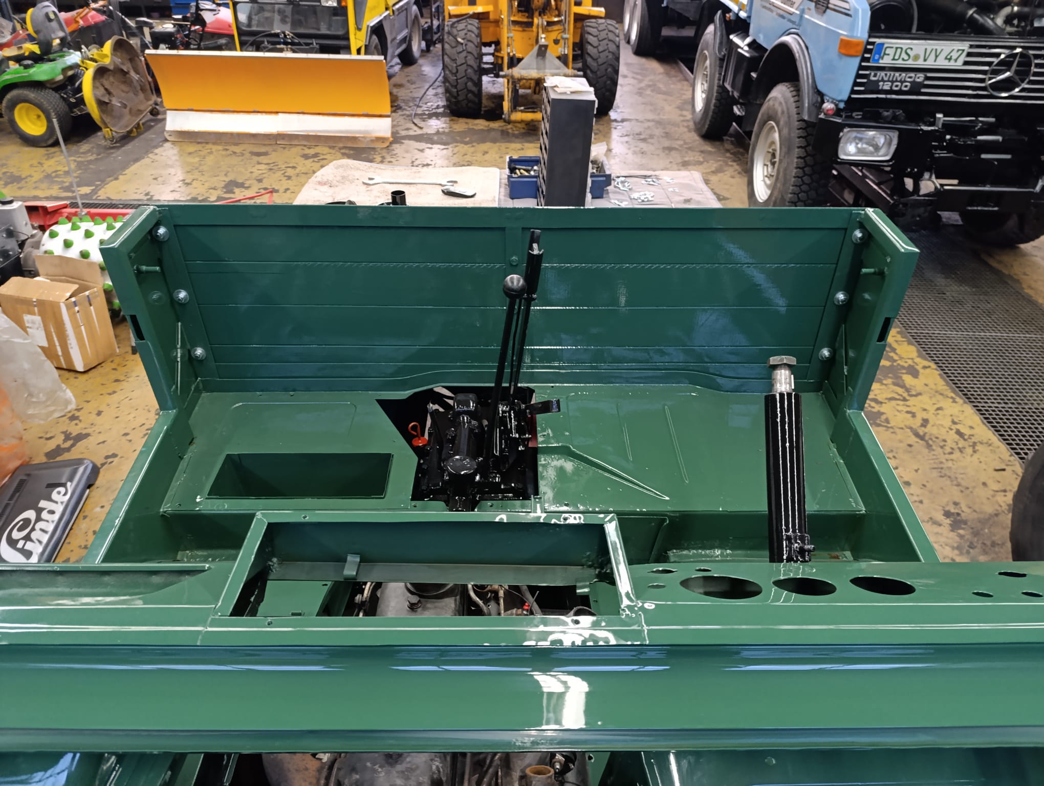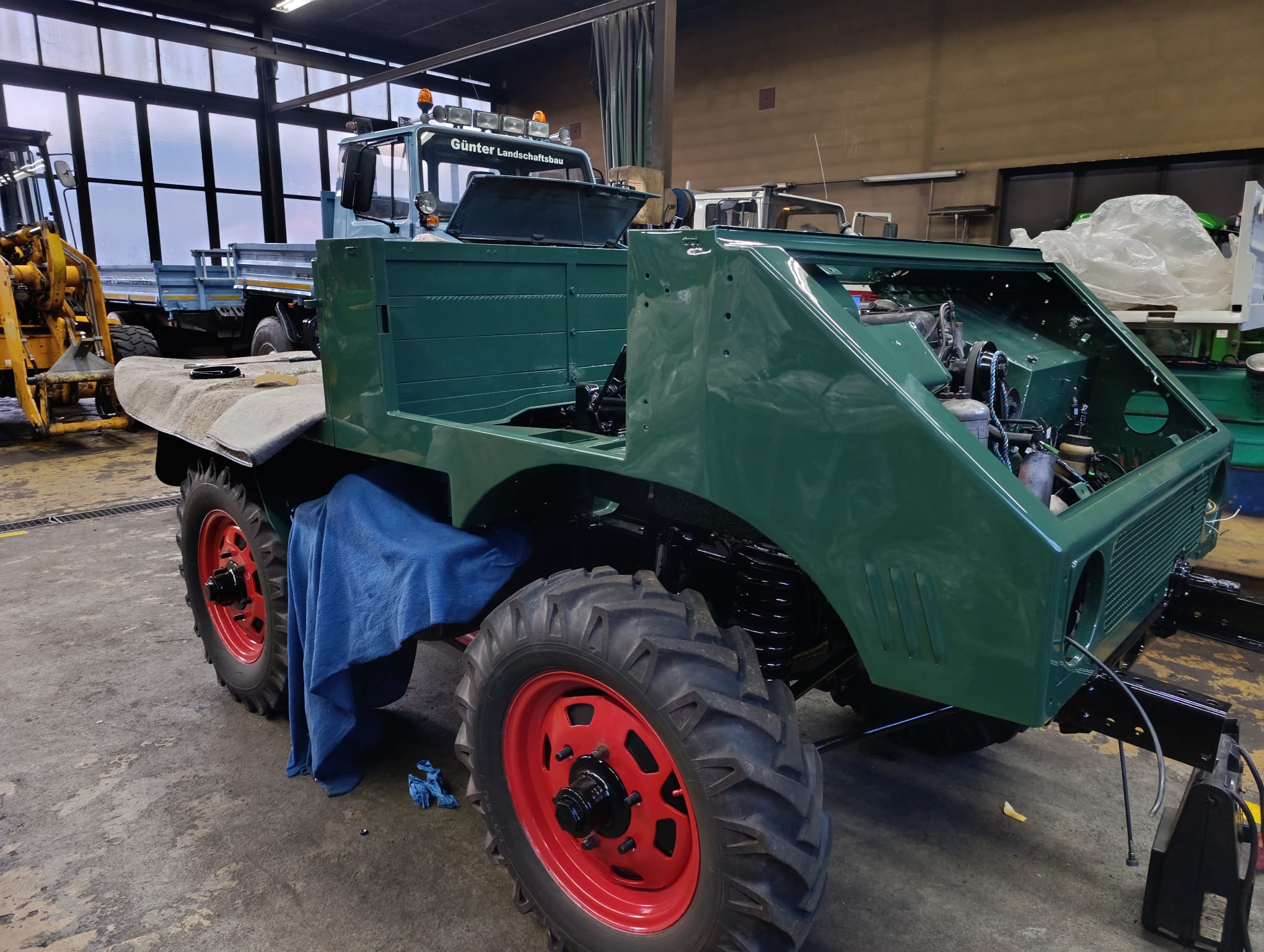 Update 6: Inzwischen wurde das Fahrerhaus lackiert, neue Bordwände wurden gezimmert und lackiert.